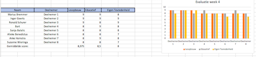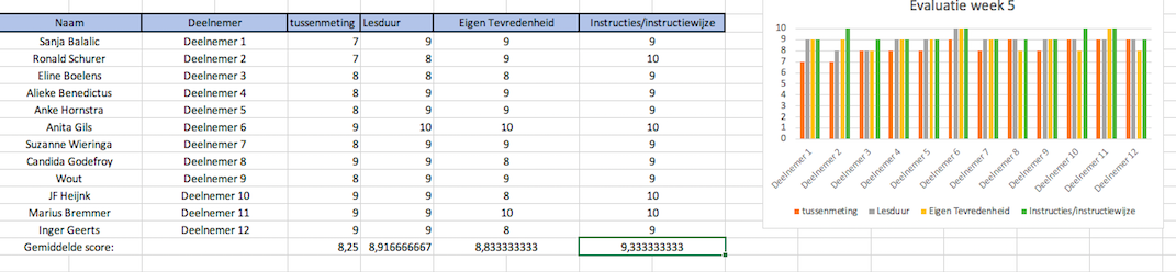 Hier zichtbaar de evaluatie waarin communicatie richting deelnemers is opgenomen. Zowel als uitleg en als het aanleren/bewust worden van core stability.